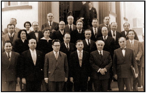 Soldan saÄŸa İkinci sırada: Prof. Dr. Mehmet DokuzoÄŸuz, Prof. Dr. Nahide Altan, Prof. Dr. Hıfzı Güner, Prof. Dr. Bedii Åžakir Toktay, Prof. Dr. İsmail UlutaÅŸ, Prof. Dr. Emin Faik Üstün.